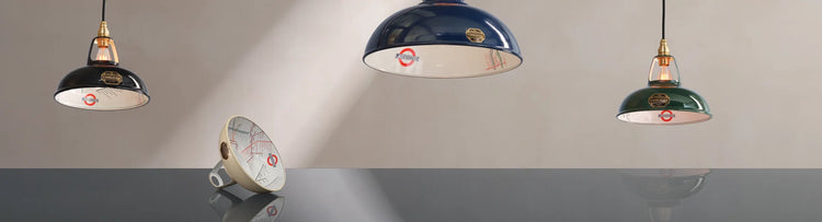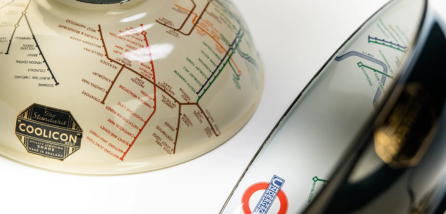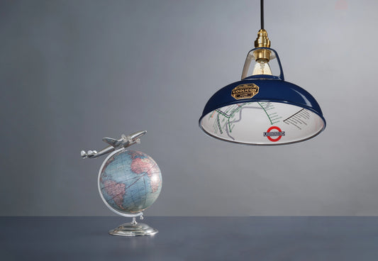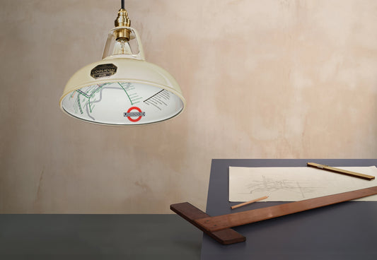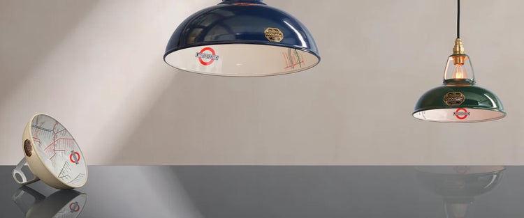 Expertly hand-enamelled like the Underground signs themselves, Coolicon lampshades were used extensively throughout the London Underground network.